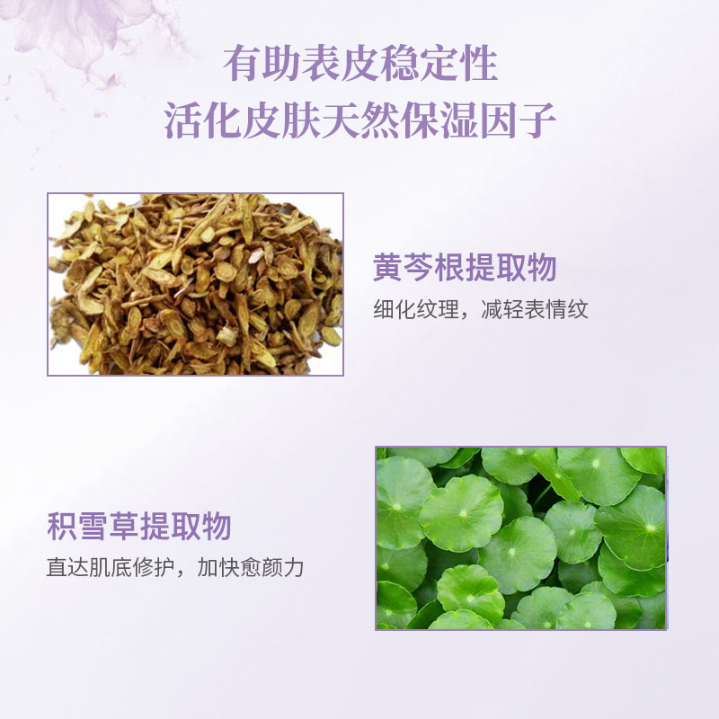 | 产品特性说明 | 虎杖(POLYGONUM CUSPIDATUM ) 根提取物、黄芩( SCUTELLARIA BAICALENSIS ) 根 提 取 物、尿囊素、母菊 ( CHAMOMILLA RECUTITA ) 花提取物、积雪草 (CENTELLA ASIATICA)提取物、甘草酸二钾、迷迭香(ROSMARINUS OFFICINALIS)叶提取物修护效果 |