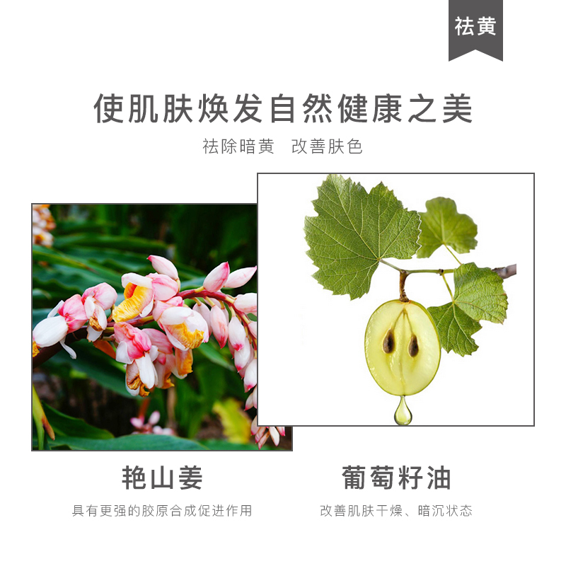 | 产品特性说明 | 富含植物提取精华成分、艳山姜:冲绳岛的极端长寿密码,绳产的艳山姜叶的提取物具有更强的胶原合成促进作用, 祛除暗黄,改善肤色,由内而外改善肌肤健康问题,使肌肤焕发自然健康之美,显现通透光泽、 改善皮肤松弛,活化肌肤的同时,令肌肤更加健康饱满、紧实、有弹性。 |